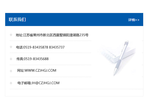 地址:常州市新北區(qū)友邦商務(wù)大廈1幢16、17層  電話:0519-85101652  傳真:0519-85112595  郵編:213022  網(wǎng)址:www_cz-jiayue_cn.iksnail.com  郵箱:xiajifengaa@163.com